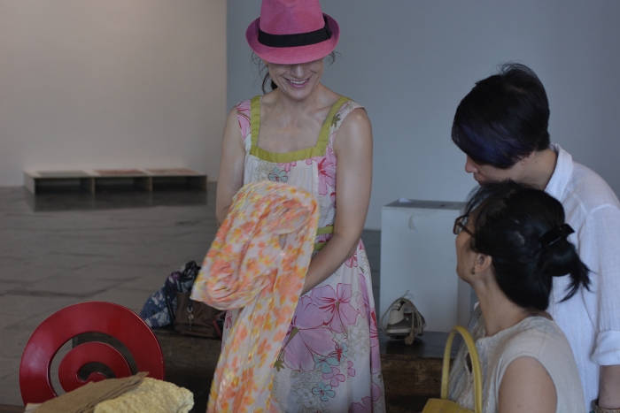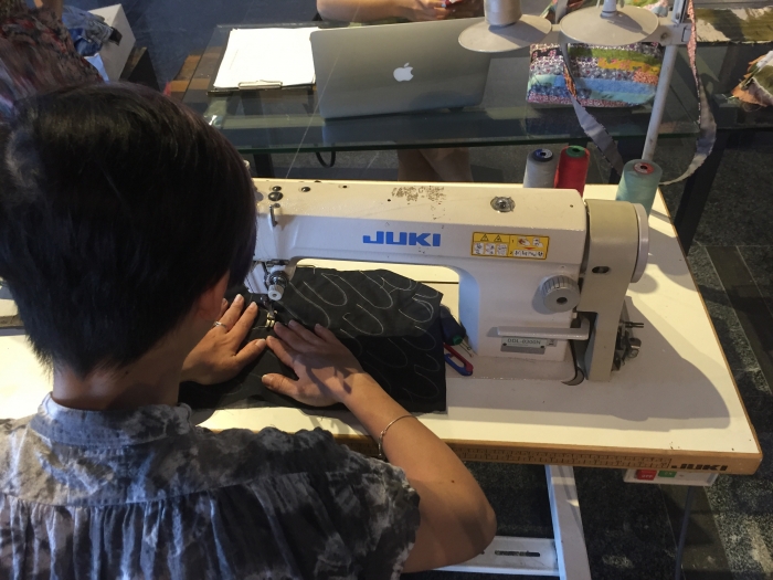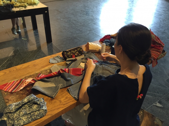 In Hà Nội, fashion designer Phạm Hồng and I organized a craftivism project titled Remake. We fashioned a 'factory' in the Heritage Space gallery mimicking Vietnamese sweatshops that contractors often locate in residential homes.