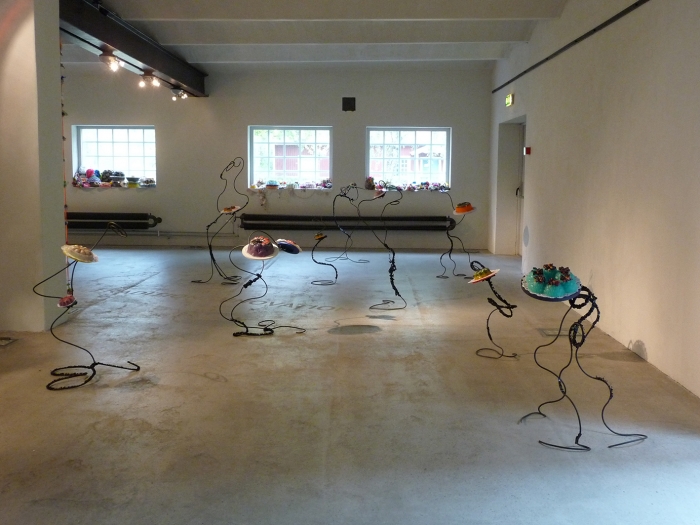 Sagoberättelser was my first effort selecting archival work to include in an exhibition. I chose minimalist textiles and drawings by the late Swedish designer Peter Condu, who died in 1986 from AIDS and whose work was largely forgotten, from the holdings. I juxtaposed his work with my ultra-baroque sculptures, textiles and wallpaper in an effort to cultivate a relationship between historic and contemporary material culture and the sociocultural conditions in which each of us fabricated our practice.