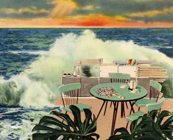 The Modern Series is an ongoing project of archival ChromaLuxe aluminum prints and works on paper. These compositions' subject matter emphasizes the industrial, architectural, and interior design of Mid-century Modernism, once manufactured in the post-prosperity communities that I investigate in my disinvested cities exhibitions. I create these compositions by abstracting and repurposing tourism, fashion, and design advertisements to create imaginary realism compositions evoking Modern culture.