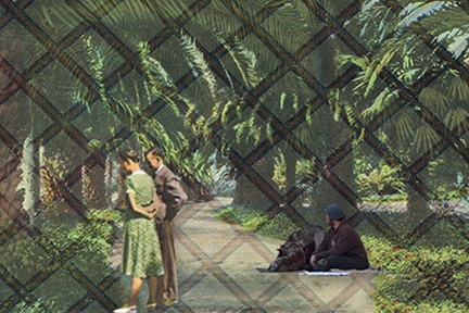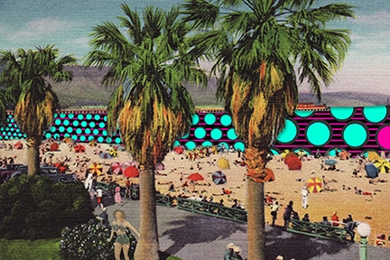 The idea for Super Natural began with a series of conversations with curator Maria Udovychenko. The exhibition was inspired by Russians' fascination with the alluring city of Santa Barbara, which began with the soap “Santa Barbara,” the first U.S. television program to air in Russia in the Nineties after the collapse of the Soviet Union. It portrayed a fantasy world, which contrasted with the hardship of their post-Perestroika daily lives. Super Natural included 17 large-scale and 26 smaller archival photographic interventions, a six-channel video installation, and on-camera interviews with community members in both locations.